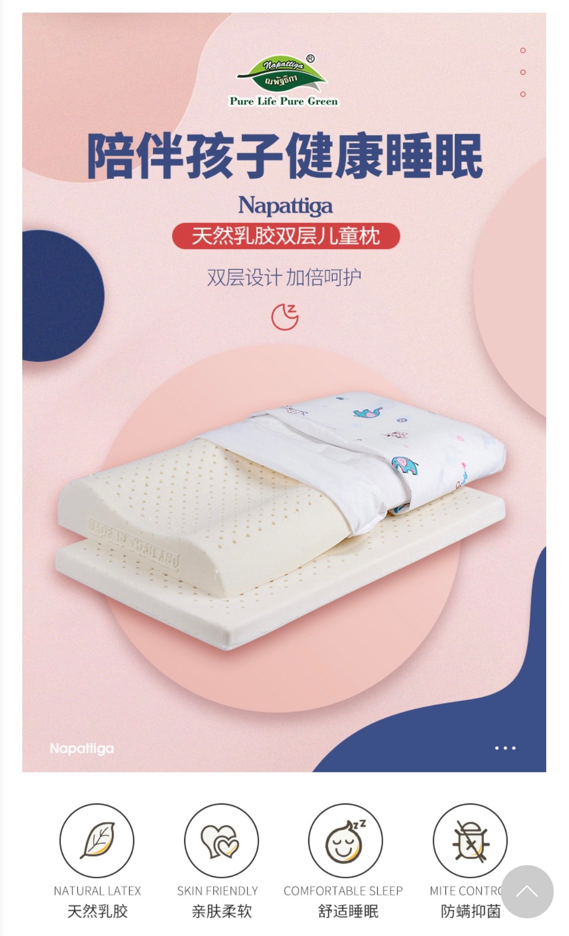 泰国Napattiga天然乳胶枕双层儿童枕NPK